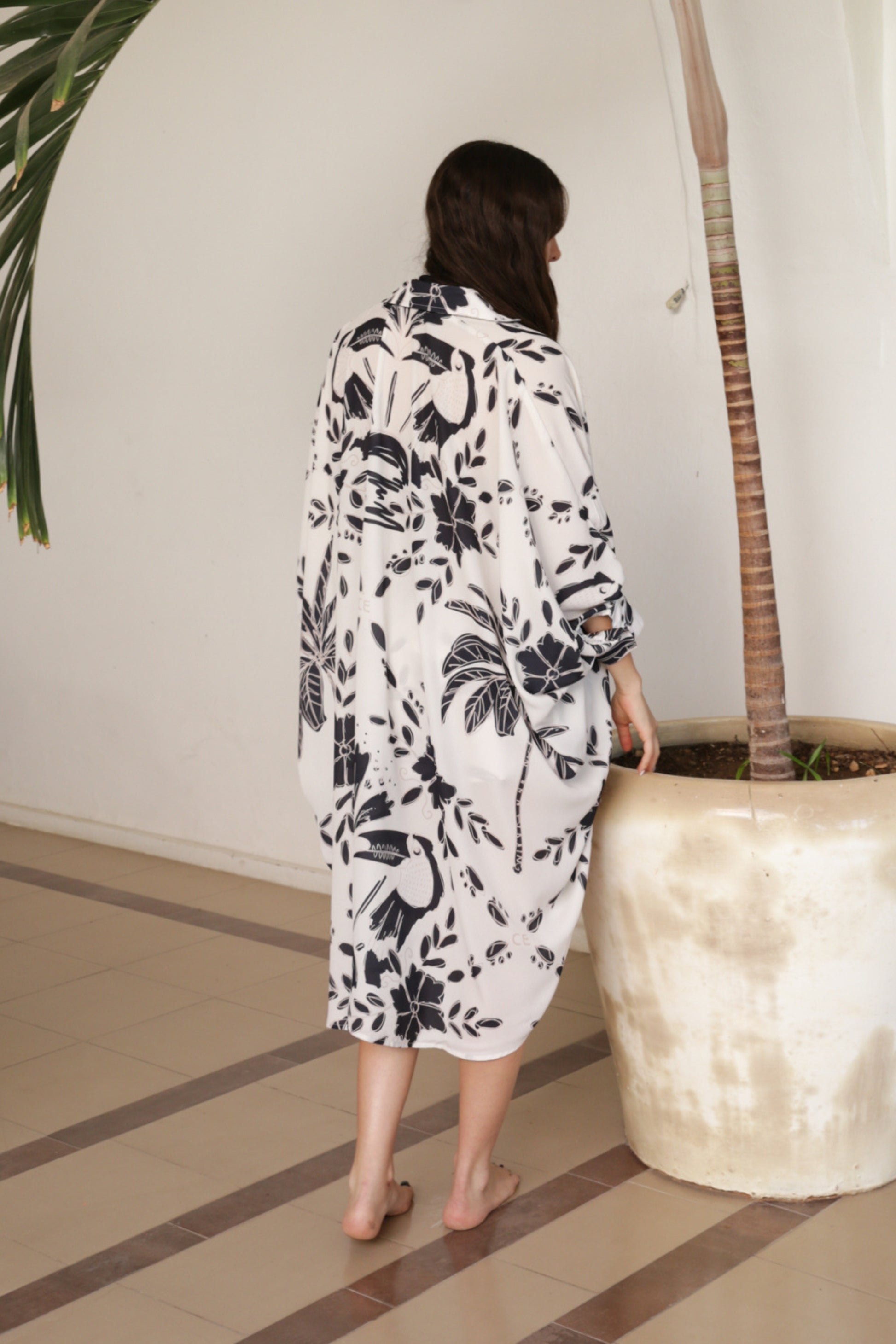 Camisa amplia manga 3/4 con puño, corti - larga con cuello y botones