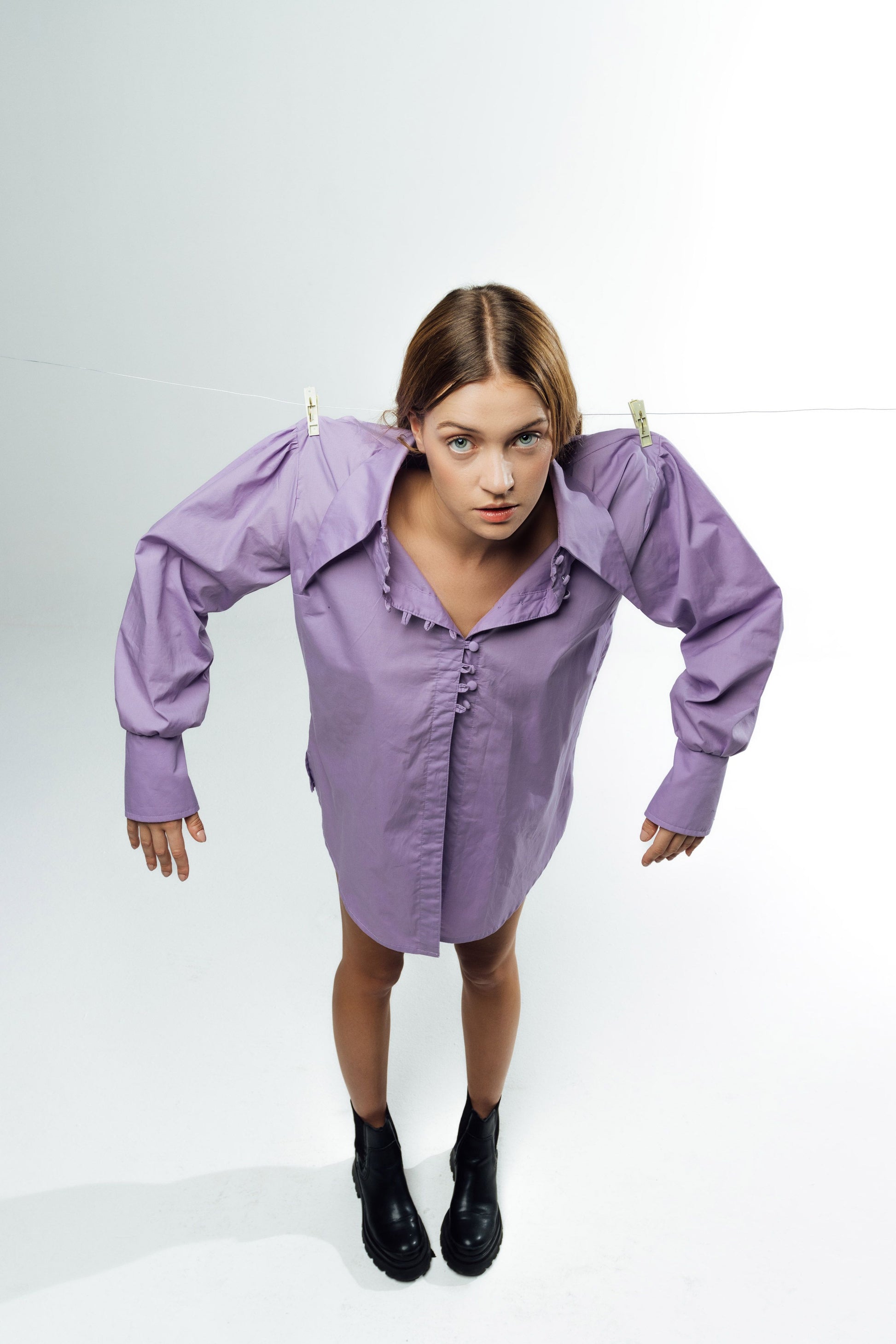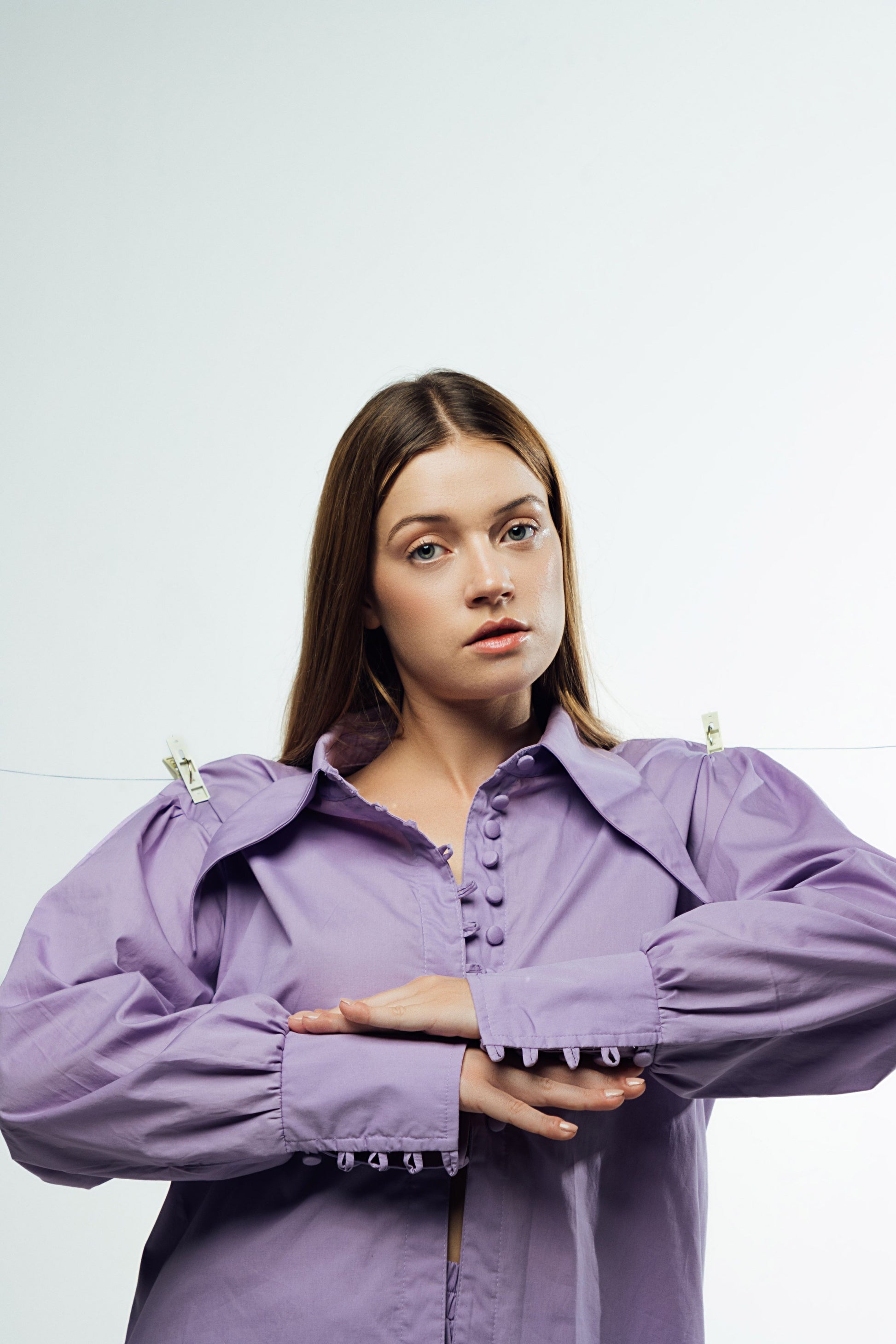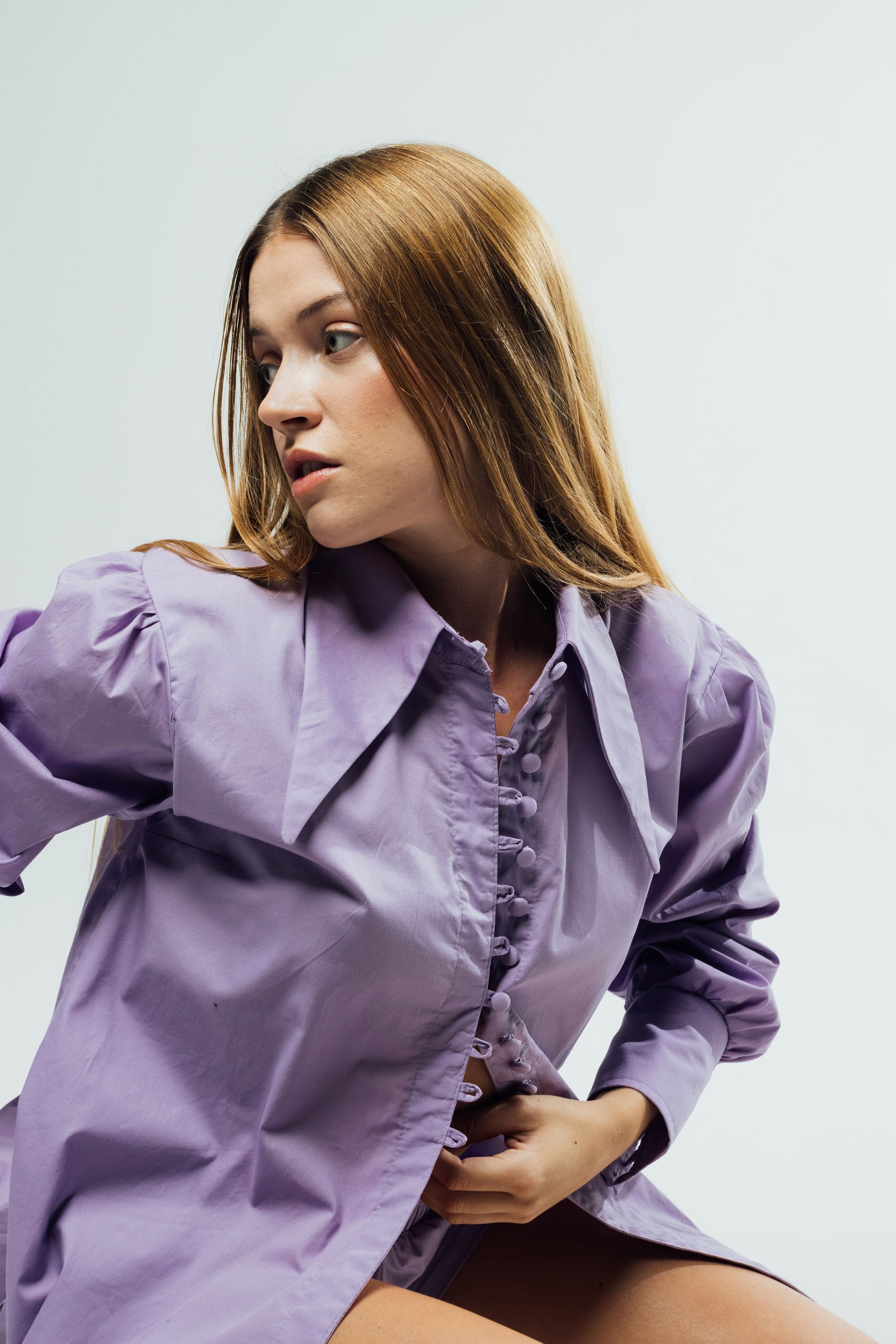 Para un look clásico y estructurado. Su silueta extragrande presenta costuras caídas en los hombros, abotonadura forrada y un cuello extra grande,. Terminado con mangas hasta el brazalete aseguradas con detalles de cuatro botones en cada puño.