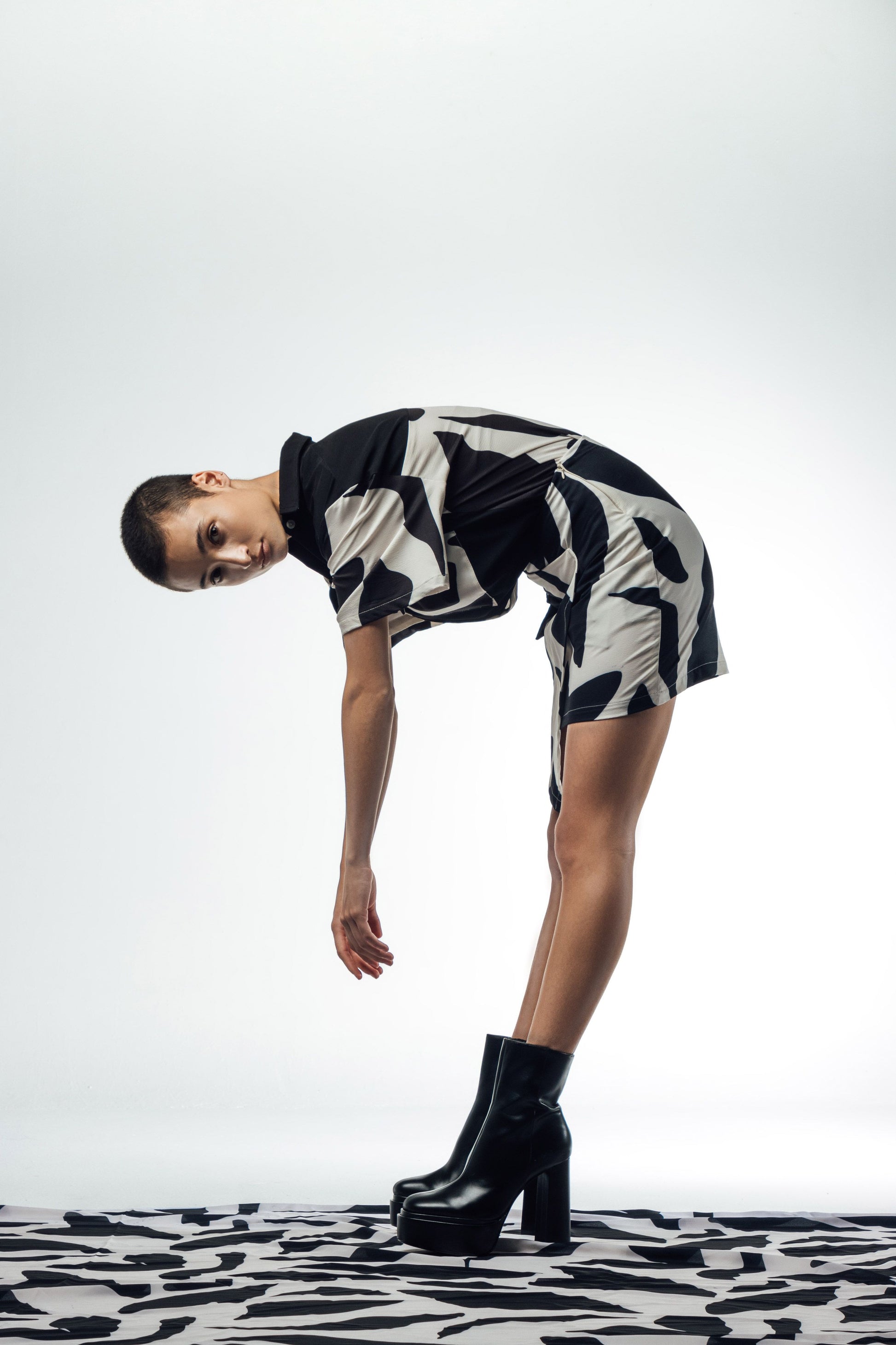 Estilo versátil hecha de una tela viscosa de print blanco y negro .Un estilo de la colección SELF EXPRESSION Mis dias blanco y negro, mis días de color. Usa este modelo para tus días blanco y negro y arma el set con la camisa cargo de la misma tela.