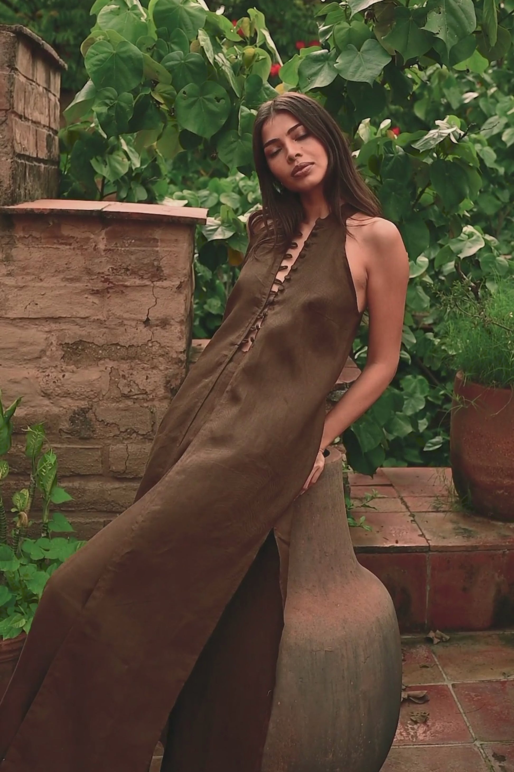 Pantalón Pinzas Café